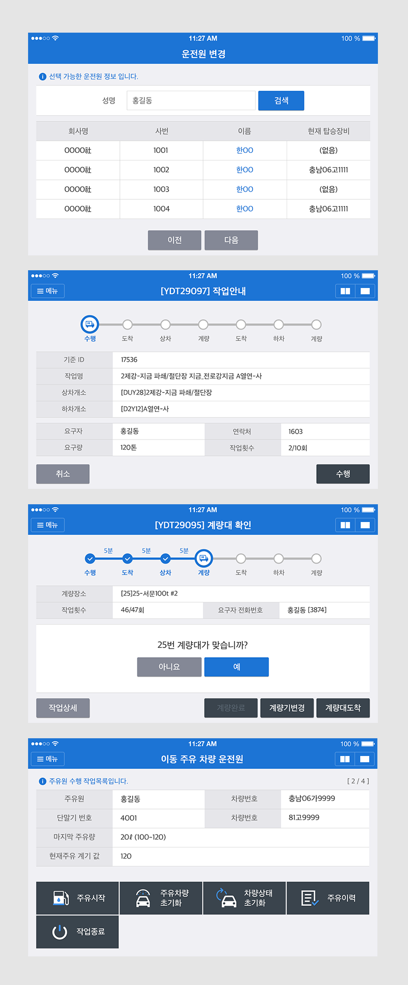 운전자가 차량 이동 중에도 쉽고 빠르게 운송 정보를 처리하기 위한 UI, UX를 운전자 중심으로 구현했다.